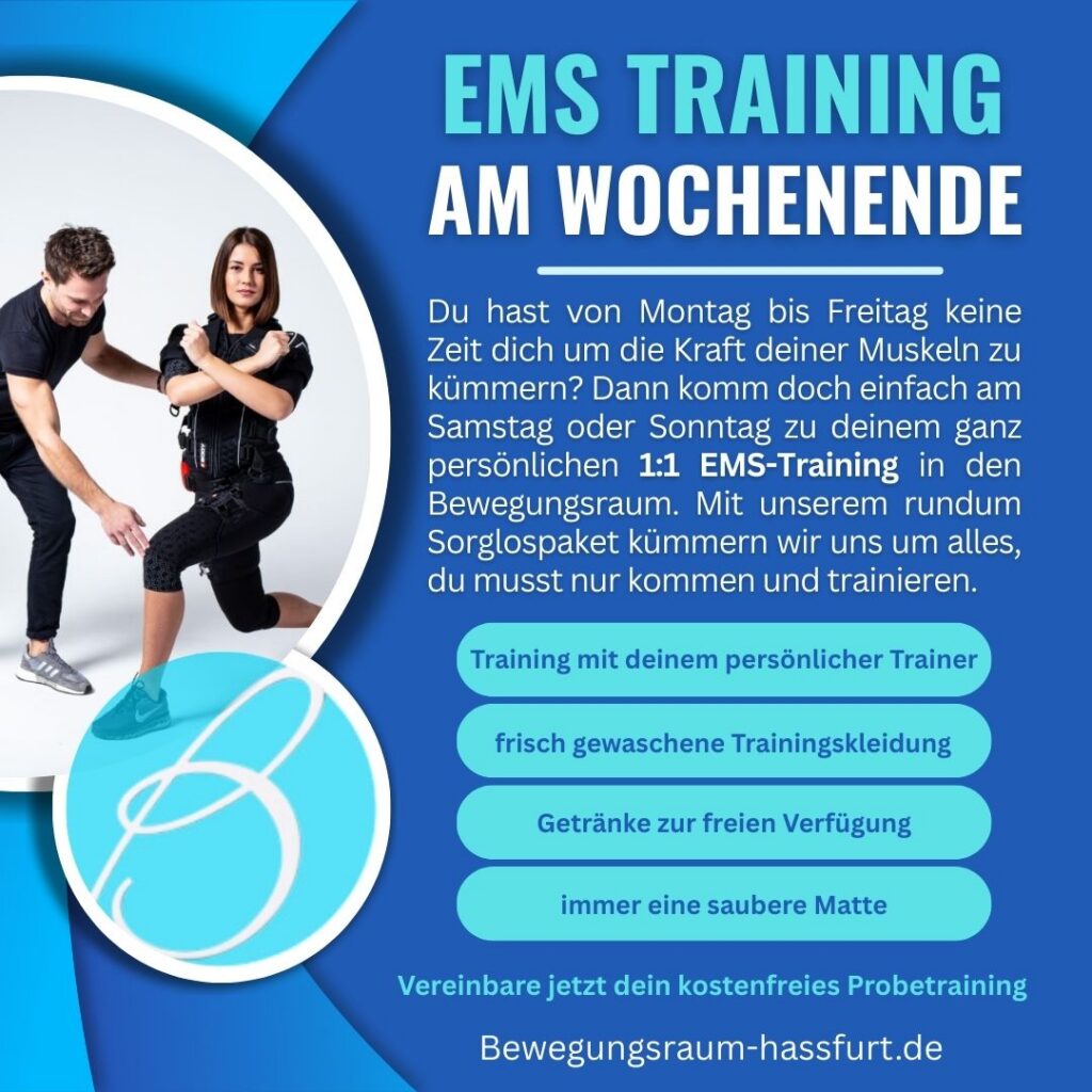 Bei uns im Bewegungsraum trainierst du immer in einer angenehmen Atmosphäre 1:1 mit deinem persönlichen Trainer. Melde dich für dein persönliches Probetraining unter info@bewegungsraum-hassfurt.de oder ruf einfach an: 09521/9537474.